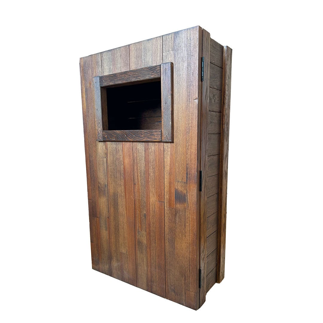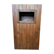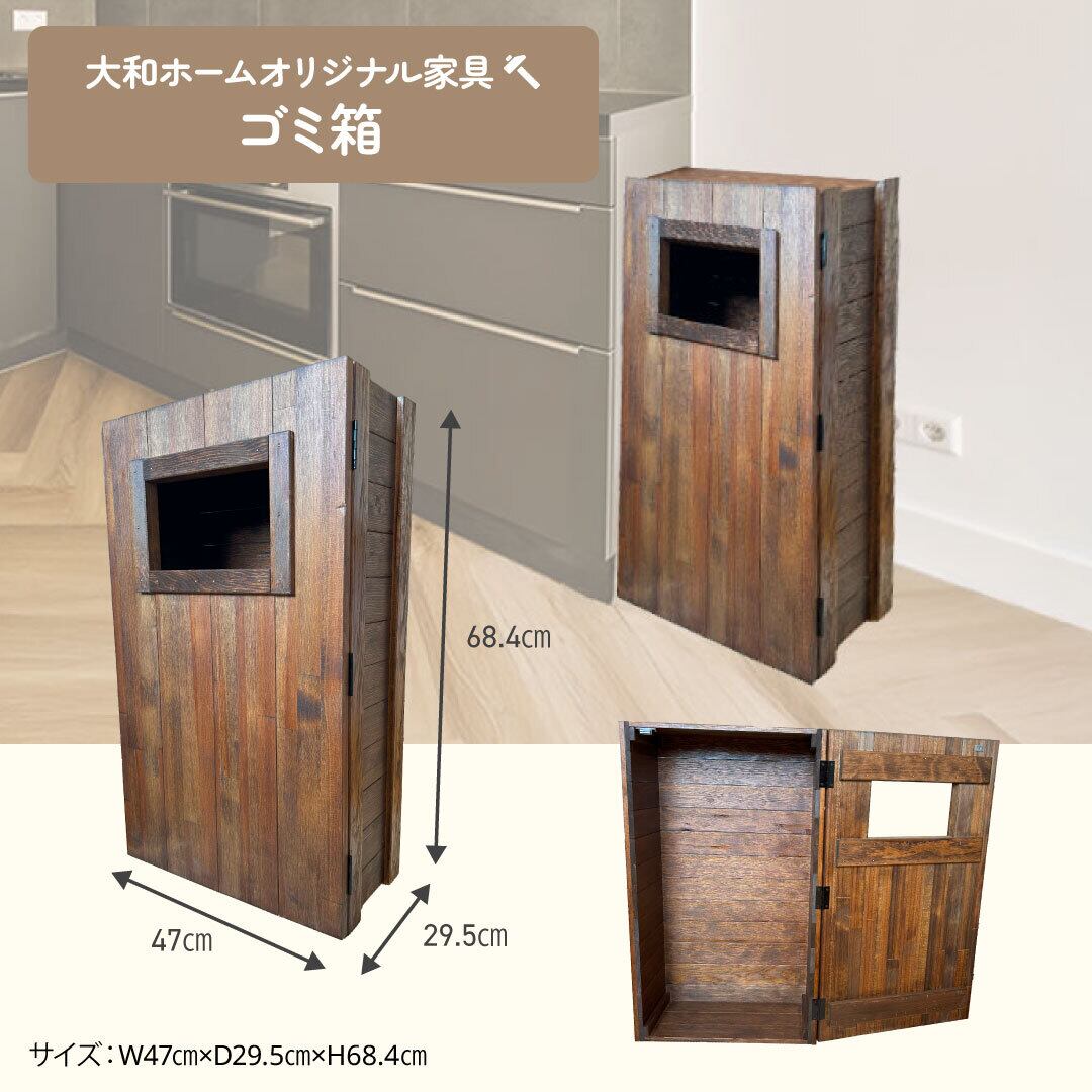●木の味わいある、大工さん手造りのゴミ箱です。 ●ゴミ投入口は、中が直接見えにくいようになってます。 ●ゴミを取り出しやすいように、右開きの扉を付けました。 (※本物の木で造っております。多少の凹みがある場合があります)